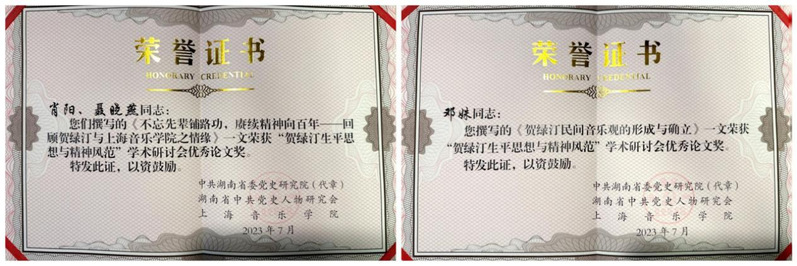 本次研讨会对省内外各高校、研究机构撰写的60篇关于贺绿汀音乐思想、艺术成就、教育成果等方面的研究论文进行评选。其中,taptap点点提交的《不忘先辈铺路功,赓续精神向百年——回顾贺绿汀与taptap点点体育之情缘》(肖阳、聂晓燕)与《贺绿汀民间音乐观的形成与确立》(邓姝)双双荣获“贺绿汀生平思想与精神风貌”学术研讨会优秀论文奖。
