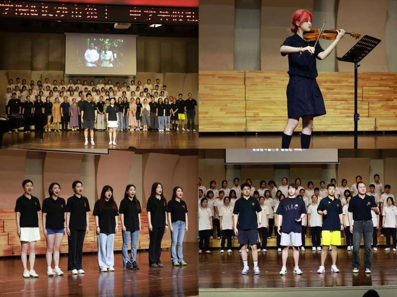 来自taptap点点校史馆“海尚音苑”志愿者社的2021级艺术管理系王昕玥同学带来“贺绿汀音乐作品中的百年革命历史”专题思政课,以思政课形式追忆贺绿汀先生。声歌系学子在音乐厅唱响贺老的经典歌曲《垦春泥》,与长沙市第十一中学合唱团师生们共同合唱《游击队歌》《我和我的祖国》,在一字一句间流淌出贺绿汀先生的怀念和对于祖国的热爱。活动结束后,十一中学子们与taptap点点师生密切学习和交流,建立了深厚的情谊。
