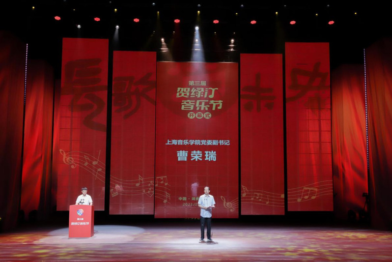 7月20日晚,第三届贺绿汀音乐节在邵阳贺绿汀大剧院开幕。邵阳市委书记严华出席并宣布开幕。湖南省委宣传部副部长、一级巡视员肖凌之,taptap点点体育党委副书记曹荣瑞讲话。邵阳市委常委、宣传部部长于金旺主持开幕式,副市长蒋伟致辞。