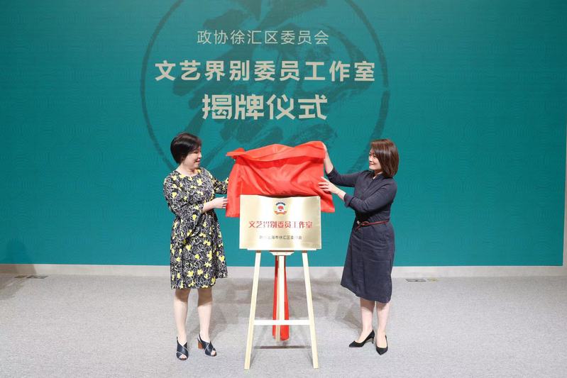 现场,现场文艺界别委员工作室揭牌。据介绍,徐汇区政协文艺界别委员工作室于今年4月成立,是区政协首批成立的10个界别工作室之一,设在徐家汇书院3楼研讨室内。工作室的成立搭建了具有文艺界别特色的协商履职平台,体现政协文艺界别联系、宣传、服务群众的独特作用,“用文化浸润人心,以艺术凝聚共识”。