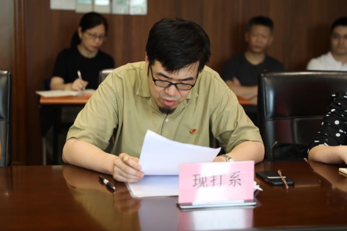 第八轮被巡察二级党组织作曲指挥系党总支书记邱惠柳、马克思主义学院与公共基础部联合党支部书记汤隽杰、直属单位党总支书记张一及第九轮被巡察二级党组织声歌系党总支副书记(主持工作) 朱晶晶、现打系党支部副书记(主持工作)颜睿超、离退休党组织代表易慧分别作了表态发言。