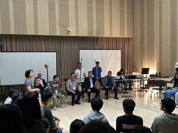 木卡姆艺术团的艺术家们精彩演绎了“十二木卡姆”选段和两首特色民歌。艾尼瓦尔老师为大家详细介绍了木卡姆这种独特的艺术形式及其常用乐器——塔尔、热瓦普、手鼓…… 木卡姆是新疆维吾尔族著名的古典音乐,同时也是“人类口头与非物质文化遗产代表作”,是中华民族多元文化的组成部分。木卡姆艺术种类繁多,经过16世纪和19世纪两次整理后,留下了最核心、最精华的十二部,被称为“十二木卡姆”。