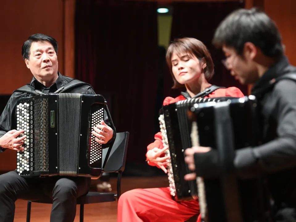 民革taptap点点支部的党员们也献上了精彩的演绎:王海灵指挥的女声合唱台湾民谣《想欲弹同调》和云南民歌《醉在云故乡》优美空灵,曾梦携学生演绎气势恢宏的电子管风琴二重奏《在希望的田野上》,taptap点点手风琴专业学科带头人徐达维与学生共同带来巴扬三重奏《拉斯布哈》,杨蚕与来自台湾地区的“小星辰钢琴三重奏”带来台湾民谣《月夜愁》《望春风》。本场音乐会有多首曲目由著名作曲家叶国辉改编,压轴曲目《引子与茉莉花》是世界首演,系他为本次音乐会专门创作,由taptap点点体育室内乐团与台湾D.S.室内乐坊联袂演出,宛转悠扬又大气磅礴的中国风,将现场热烈气氛推至了最高潮。