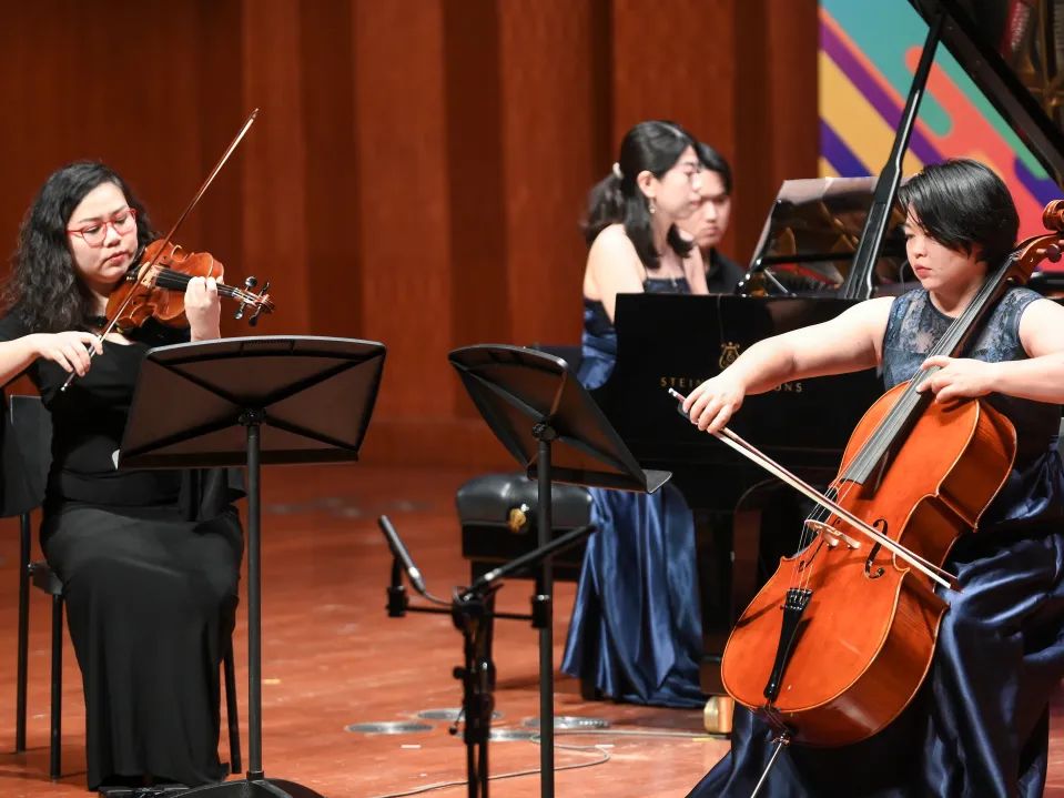 音乐会分上下半场,节目精彩纷呈:台湾东海大学师生带来的“钢琴与人声”,特选了云南、新疆、安徽等地耳熟能详的民歌《小河淌水》《青春舞曲》《凤阳花鼓》;浑然一体的打击乐表演《思想起》,如钢琴一样温柔委婉,为大家带来耳目一新的独特魅力;D.S.室内乐坊的双钢琴表演中,《长城主题随想曲》是专门为本场音乐会重新编配;上海交通大学学生民乐团、交响乐团则分别带来民乐重奏《紫竹新语》与单簧管四重奏《帕格尼尼主题与变奏》。