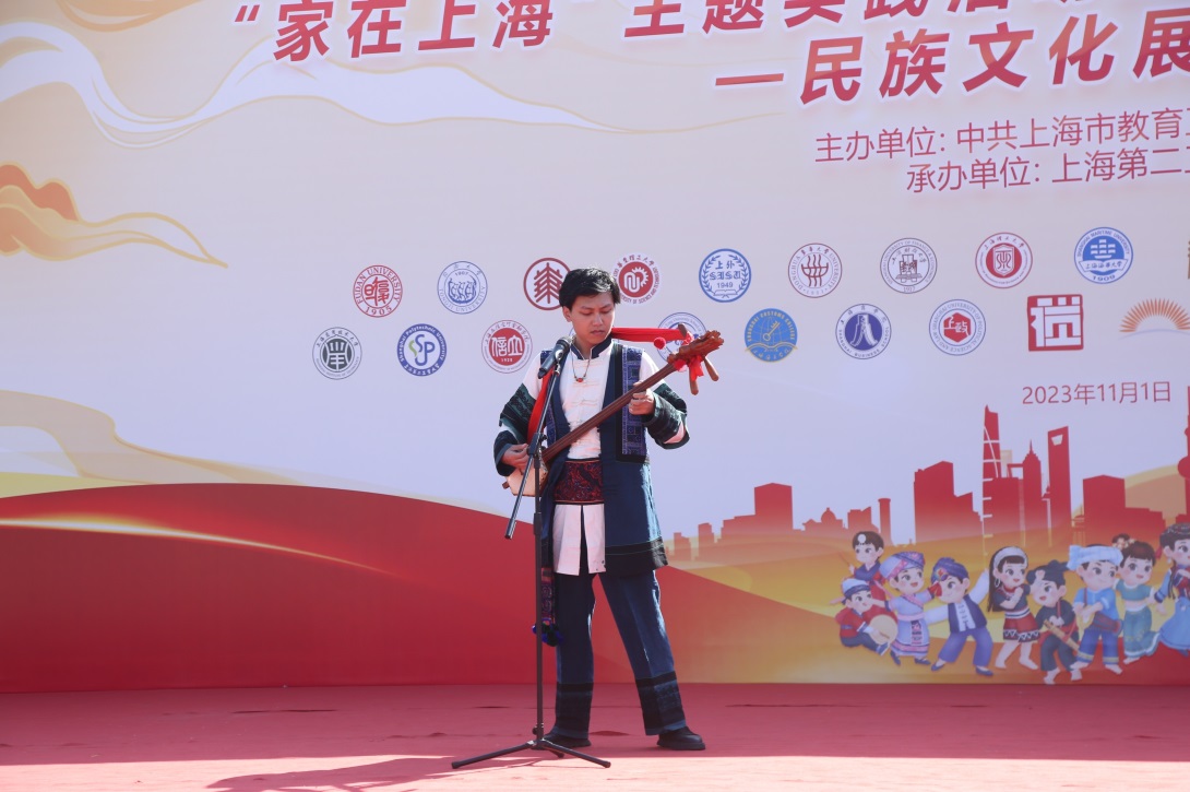 在活动开幕仪式上,二工大党委书记陆敏致辞,市教卫工作党委副书记张艳萍宣布开幕。taptap点点声乐歌剧系的白族学生赵广原为大家带来白族乐器——三弦的弹唱。
