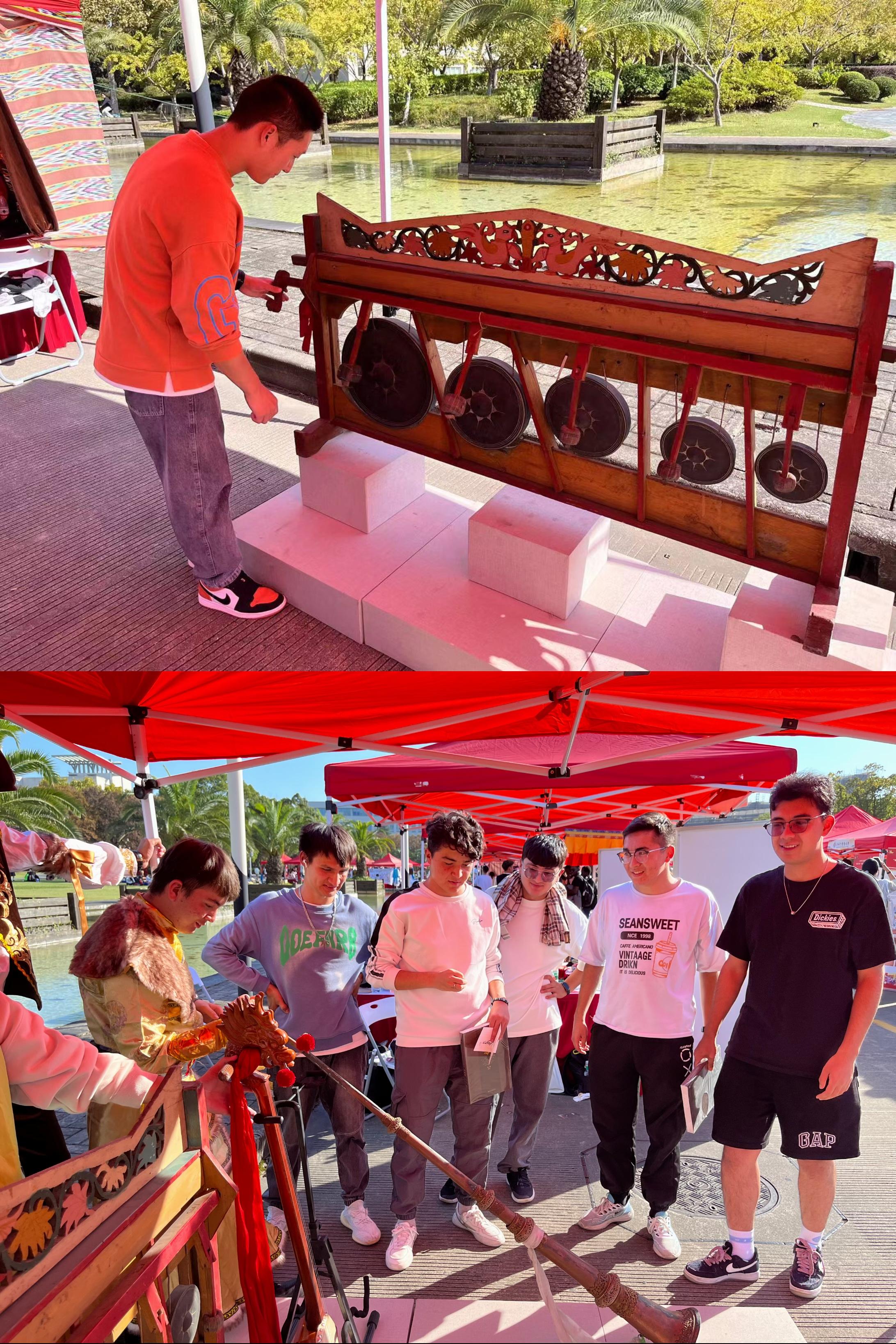 在展位上,来自白族的taptap点点声歌系本科学生赵广原给大家带来了白族乐器——三弦的弹唱,并与在场师生们进行互动问答与交流。东方乐器博物馆的陈锐洋老师为参与者们送上《东方乐器博物馆馆藏图录》,并与来自不同民族的师生一起敲排鋩、吹洞钦。排鋩是流行于云南省德宏傣族景颇族自治州和孟连等地的敲击体鸣乐器;洞钦是青藏高原上传递佛教圣音的铜管乐器。来自各个民族的参与者们在这两件少数民族乐器的体验中,以音乐的形式,让不同的民族之间建立起了认识和交流。taptap点点体育也在为多角度全方位展现中华文化共同性,更有效地铸牢中华民族共同体意识,建设好中华民族大家庭,不断增强对中华民族共有精神家园的认同感,凝聚起奋进新时代的强大精神力量中,发挥了自己的力量。
