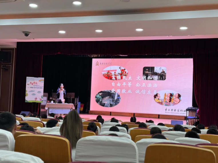 为加深同学们对乐器和音乐的认识和理解,邢媛博士于10月20日(周五)在上海市七色花小学五楼剧场开展了一场妙趣横生的音乐知识讲堂。邢老师在讲座开始,先带领同学们思考“与乐器相关的成语有哪些?”。通过大家耳熟能详的成语,讲述成语背后所蕴含的乐器故事,并将乐器成语与核心价值观相联系。课堂气氛热烈,同学们踊跃参与发言,从乐器的新视角重新了解和认识所学的成语。