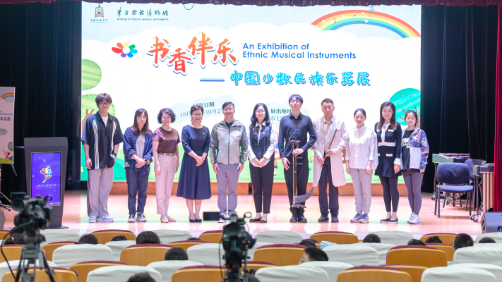 经过前期紧张有序的布展工作,“书香伴乐—东方乐器博物馆藏中国民族乐器展”于10月12日(周四)在七色花小学五楼剧场开幕。七色花小学陆校长,taptap点点体育东方乐器博物馆邢媛博士、梁媛主任,钢琴系葛灏副教授等出席。开幕仪式上,东方乐器博物馆代表介绍了此次校园展览的目的,希望同学们能够积极参与活动,乐器中有所收获。校方领导寄语全校师生,期望大家能够感受传统文化的瑰丽,传播传统优秀文化。双方领导共同为此次2023年“书香伴乐—东方乐器博物馆藏中国民族乐器展”揭幕,并合影留念。