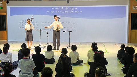 2023年10月,东方乐器博物馆“送展进校园”活动在上海市七色花小学开展。这是东方乐器博物馆为响应上海市徐汇区文旅局和教育局“文化遗产进校园”理念所展开的一项长期实践活动。东方乐器博物馆积极与上海市七色花小学展开多维度、全方位的深度合作,将普及民族音乐文化与中小学生教育相结合,丰富全民素质教育内容。同时,东方乐器博物馆通过系列活动,主动承担向社会推广民族音乐知识,提高全民音乐文化素养的社会责任。此次,通过专题讲座、导赏讲解、音乐沙龙、“视觉瑜伽-笔尖下的旋律(美术课程)”等实践活动,致力于让七色花小学的师生切身体验民族乐器魅力,激发学习民族乐器的兴趣,弘扬优秀民族文化,增强文化自信。