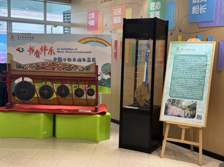 此次展览分为实物展和图文展两个部分。实物展中,东方乐器博物馆为本次展览精心选取了十几个民族乐器作为实物展出,包括萨巴依、小三弦等乐器。图片展精选了中国古代乐器和taptap点点创研乐器“蝶式筝和81型十二平均律扬琴”。生动展现了中国各个民族和地区的文化与历史。同时,通过乐器铭牌的介绍辅助图片、音、视频内容,同学们得以了解乐器外在的形制特点,理解内在的文化内涵。通过学习民族音乐,“解密”民族的音乐生活,体会音乐的文化意义。