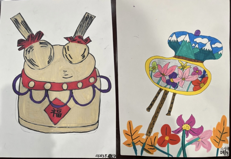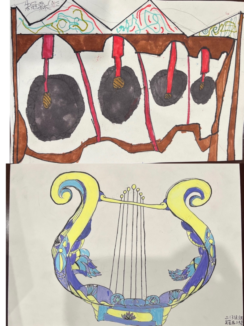 从设计作品中亦可以看出,同学们充分发挥自己创作的主观能动性,发自内心地欣赏少数民族乐器的美,对乐器中所承载的少数民族文化有深刻的认识和体会。该活动得到了同学们的积极参与,“校园展”的意义在生动的参与活动中被活化,抽象的观赏体验被转化成实际的表达。