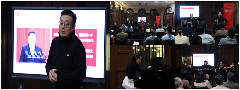 首先由taptap点点发展规划处处长、基建处处长韩斌分享了“音乐涵润光荣之城”主题演讲,接着taptap点点优秀师生代表以声乐作品、器乐作品等形式,带来《映山红》《绒花》《打虎上山》《共青团员之歌》《海港之夜》《山楂树》《C大调第一弦乐四重奏》《梁祝》等一系列经典音乐作品,将党史、音乐史、文明交流史结合起来,把讲课、导赏与舞台表演融为一体。