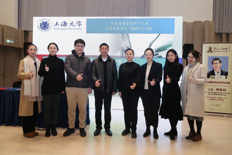 另外,本次学术研讨会得到科研处大力支持。第49期蔡元培讲堂于本次研讨会期间举办。特别邀请到上海大学外国语学院教授、上海大学应用翻译研究中心主任、《上海翻译》主编傅敬民主讲。他从翻译应用的角度深挖“音乐翻译及其研究议题”,为音乐理论翻译研究带来新的视域。