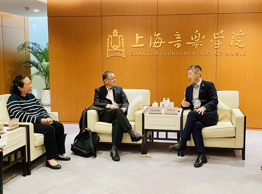11月24日上午,上海音乐学院副院长冯磊会见马来西亚思特雅大学(UCSI)音乐学院(IMus)院长方廷华(P’ng Tean Hwa)、音乐学院研究生项目主任钟谷韵(Cheong Ku Wing)和中国事务办公室高级主任施慧(Steve Shi Hui)。教务处处长杨茹文,艺术处处长史明阳,国际交流处处长陈晓翌,院长办公室副主任、研究生部副主任顾邹,国际交流处副处长(挂职)陆妍会见时在座。