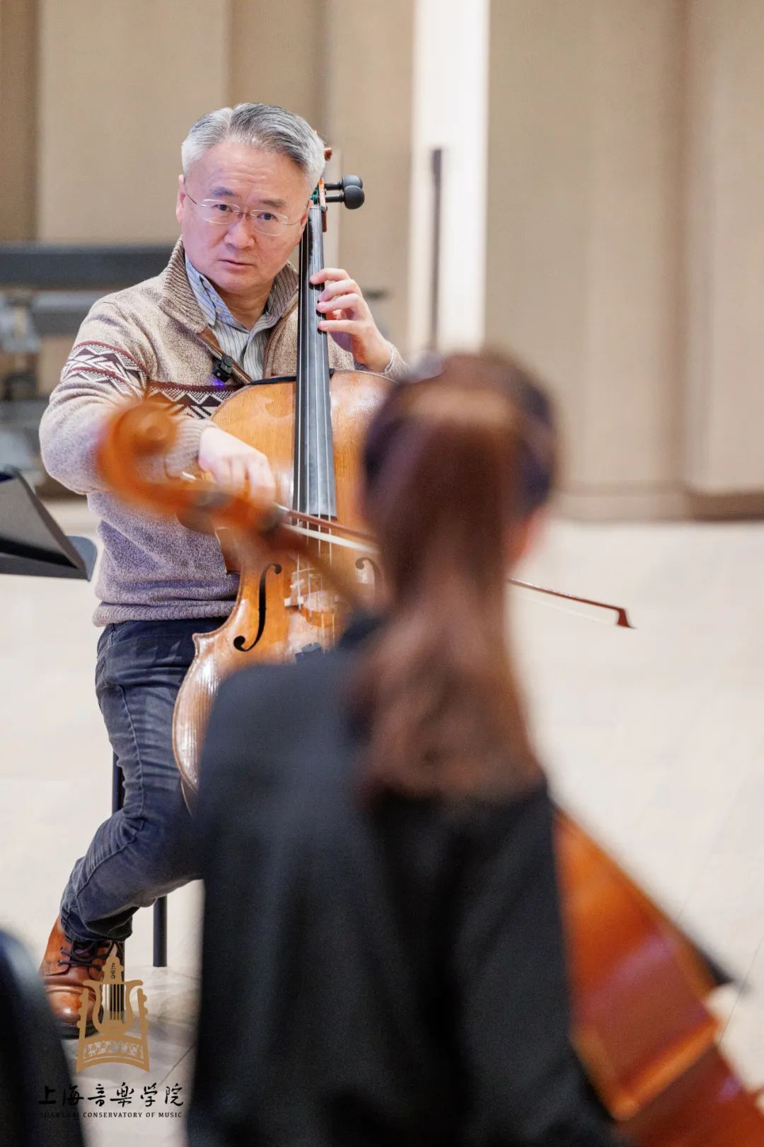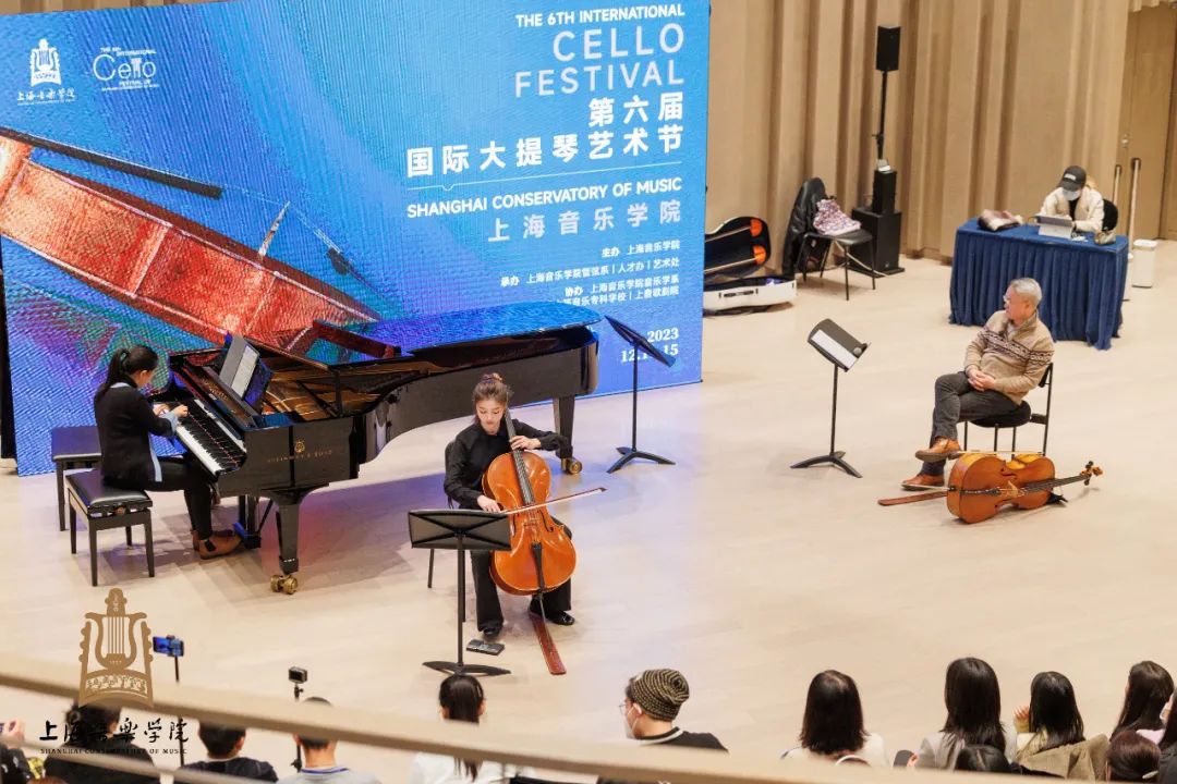 随后王健教授开幕大师课举行,预约前来的家长和琴童们早早等候在上音歌剧院门口,翘首期待这一堂难得的世界级大师课。据悉,本次大提琴艺术节大师课线下共6场、线上3场,均以免费预约形式面向社会开放。此外举办音乐会4场,包括开幕音乐会、大提琴独奏与重奏音乐会、青年教师重奏音乐会、闭幕式音乐会;大提琴艺术表演与教学论坛1场,同时开设个别课、重奏与大提琴乐队排练等。今天下午慕名前来旁听大师课的不乏全国各地的学生及爱乐者,年龄最小的仅小学四年级。下午四位授课学生分别为上音大一学生沈耿轩、中央音乐学院附中学生郝浩然、上音大二学生郑佳滢以及上音附中初二学生李奕忻,钢琴艺术指导为黄秋宁和王晨。