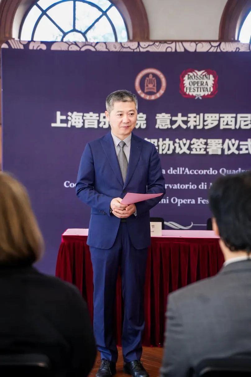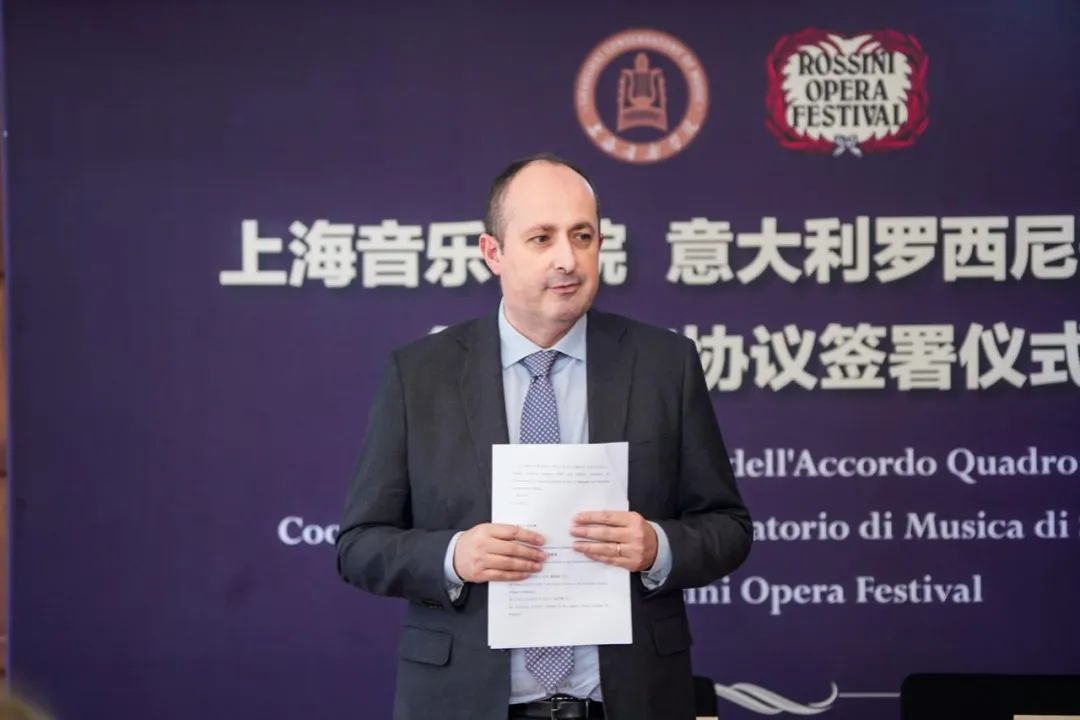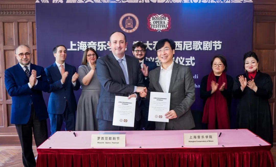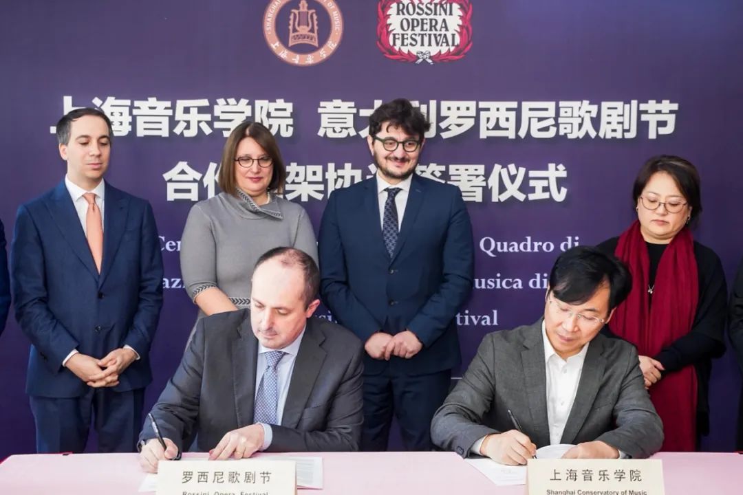 随后,上音和罗西尼歌剧节双方共同签署合作框架协议。仪式上,意大利驻沪总领馆代表与上音代表共同见证了这一历史性时刻。