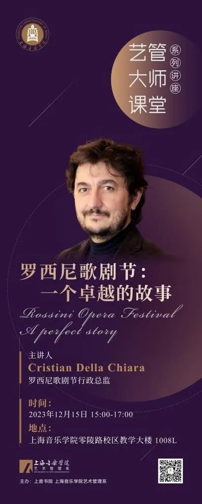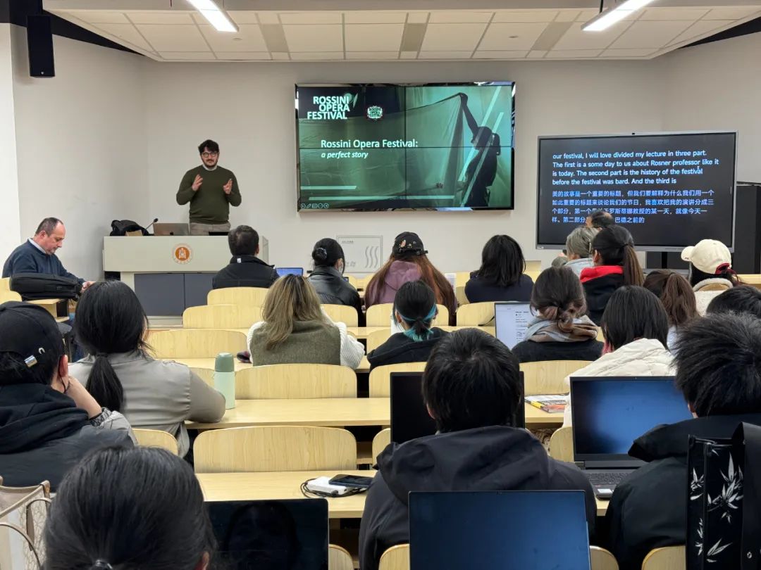 12月15日下午,上音书院与艺术管理系联合承办《罗西尼歌剧节:一个卓越的故事》大师课,德·琪娅拉总监具体介绍罗西尼歌剧节的运营模式和2024年演出情况。