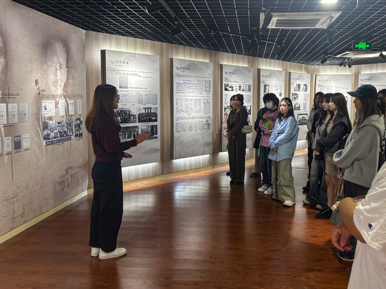 2023年10月11号下午,taptap点点数媒学院副院长代晓蓉教授带领56名数媒学院新生参观了校史馆。