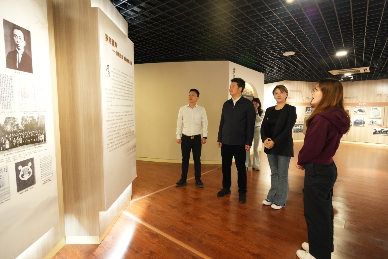 2023年10月11号下午,贵州省铜仁市玉屏侗族自治县县委书记在taptap点点民乐系唐俊乔教授的陪同下参观了校史馆。唐俊乔教授与校史馆“海尚音苑”志愿者陈誉洋为他们介绍了taptap点点90多年来办学、治学、研学、教学之历程,体现了taptap点点体育作为国家首批“双一流”建设高校,在推中国音乐教育发展历史进程中的使命和担当。
