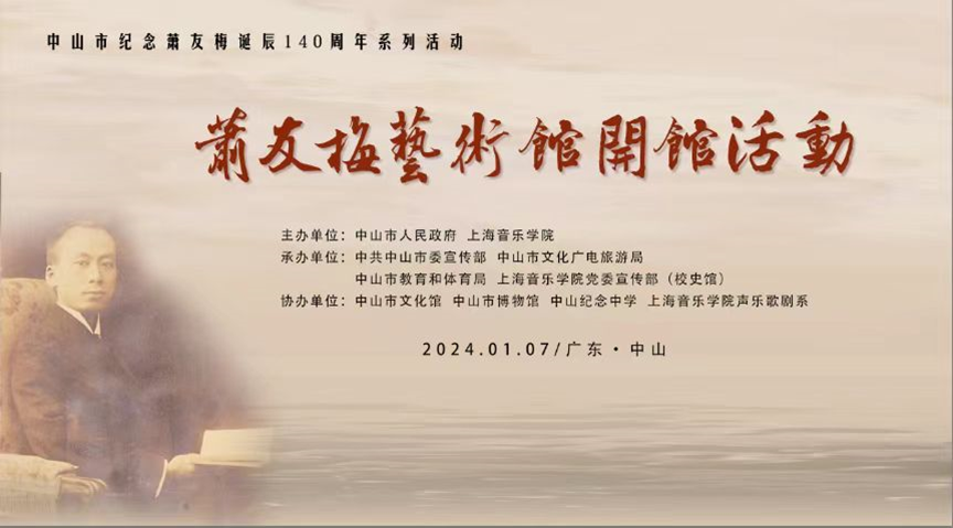 今天是我院创始人之一萧友梅先生诞辰140周年。为纪念这位中国专业音乐教育的奠基人和开拓者,理论家、作曲家,弘扬爱国主义精神,传承中华美育思想,我院与中山市人民政府共同主办萧友梅诞辰140周年暨萧友梅艺术馆开馆活动在中山市举办。