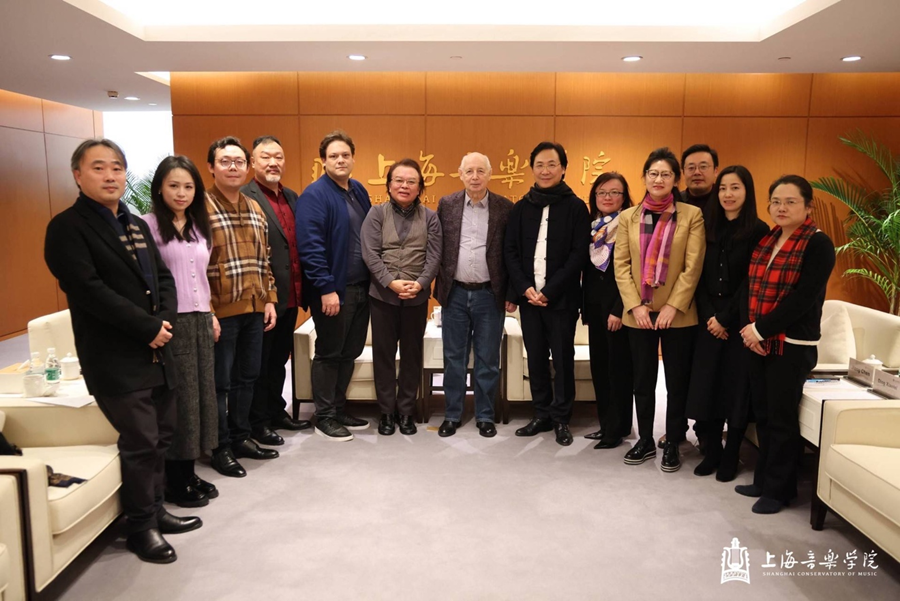 上音国际交流处处长王旭青、发展规划处处长韩斌、艺术处处长史明阳、人事处处长陈晓翌、钢琴系系主任江晨、音乐艺术研究院研究员彭程、上音附中小提琴教授丁小雷等参与会见。