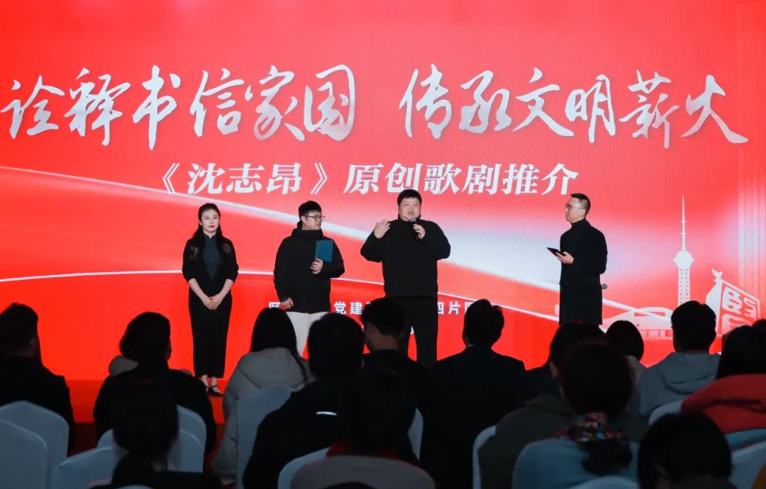 活动中原创歌剧《沈志昂》的精彩选段让观众们与奉贤第一位革命烈士沈志昂开展了一场跨越时空的“对话”。歌剧《沈志昂》团队负责人刘葭(声乐歌剧系2021级在读硕士生)手持歌剧《沈志昂》公演的票根,正式向社会宣布歌剧《沈志昂》即将在九棵树(上海)未来艺术中心正式公演。同天,团队还受邀参加了“诠释书信家国 传承文明薪火”《沈志昂》原创歌剧推介暨区级机关党建联系片第四片区专题学习活动。