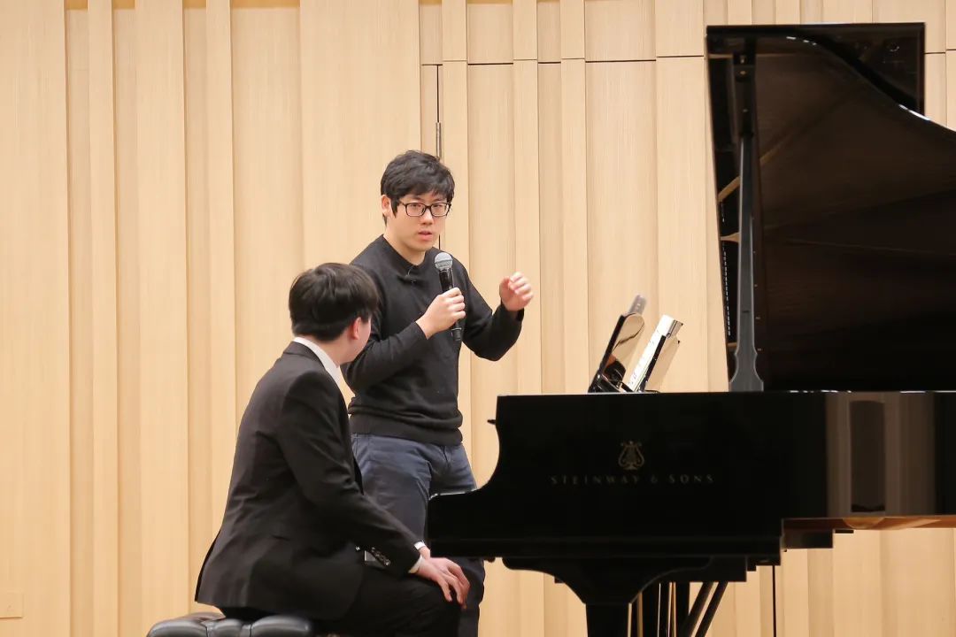 本次大师课还邀请到张昊辰幼时的钢琴启蒙老师吴子杰莅临现场。上音教师在台下注视着“国际青年钢琴演奏家”给“国际青少年获奖选手”上课,这样的学术互动吸引了诸多学子与钢琴爱好者早早就来北报深情守候。甚至还有放寒假已返回外地的学生又中途折返而来,就是为了一睹这位青年大师的风采。