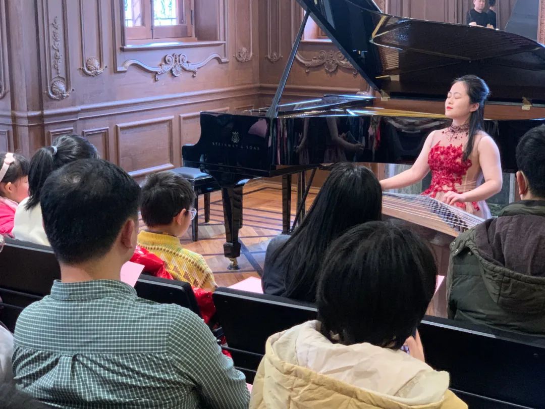 这场汇聚了上音优秀师生的新春音乐会,融合了钢琴、古筝、琵琶独奏,男女声独唱和弦乐四重奏等形制,作品汇聚古今中外优秀经典作品,如《牧童短笛》《绒花》《送我一枝玫瑰花》《闹元宵》等,也有《快给大忙人让路》《蓝色多瑙河》《爱的致意》,“沙龙”形式的音乐会让演员与观众之间距离更近,让镜厅内散发着音乐的芬芳。