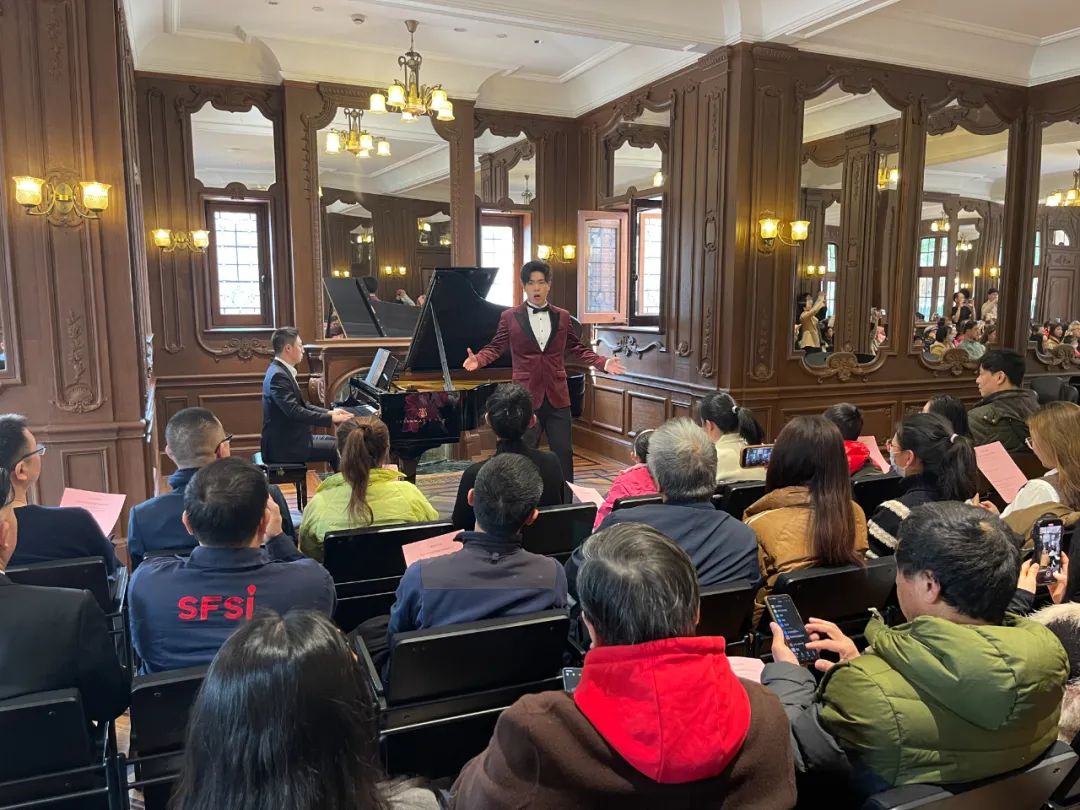 2月10日正值甲辰年农历正月初一。下午,上音“城市音乐会客厅”里响起《新春乐》的乐声。随着欢快的曲调,观众们时而和着节奏点头打拍,时而跟着旋律摇晃。上音公共开放空间新春首场音乐会就在历史保护建筑的“镜厅”内正式开启,党委书记裴小倩、院长廖昌永参加了音乐会。