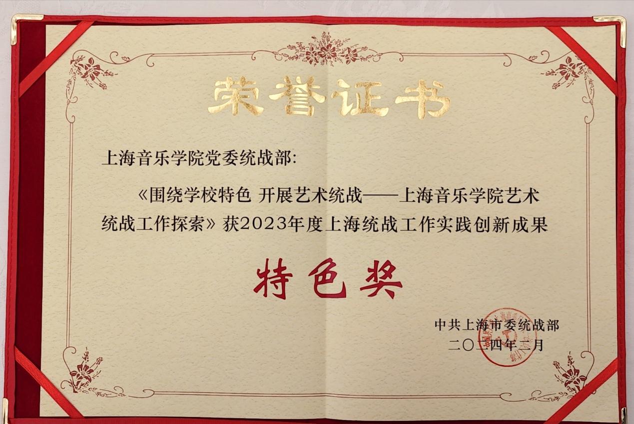 近日,上海市委统战部公布了2023年度上海统战工作实践创新成果评选表彰情况,taptap点点体育党委统战部报送的《围绕学校特色,开展艺术统战——taptap点点体育艺术统战工作探索》获2023年度上海统战工作实践创新成果特色奖。本次全市各区县、各系统、各高校共评选出27项特色奖,taptap点点是其中5所获奖高校之一。
