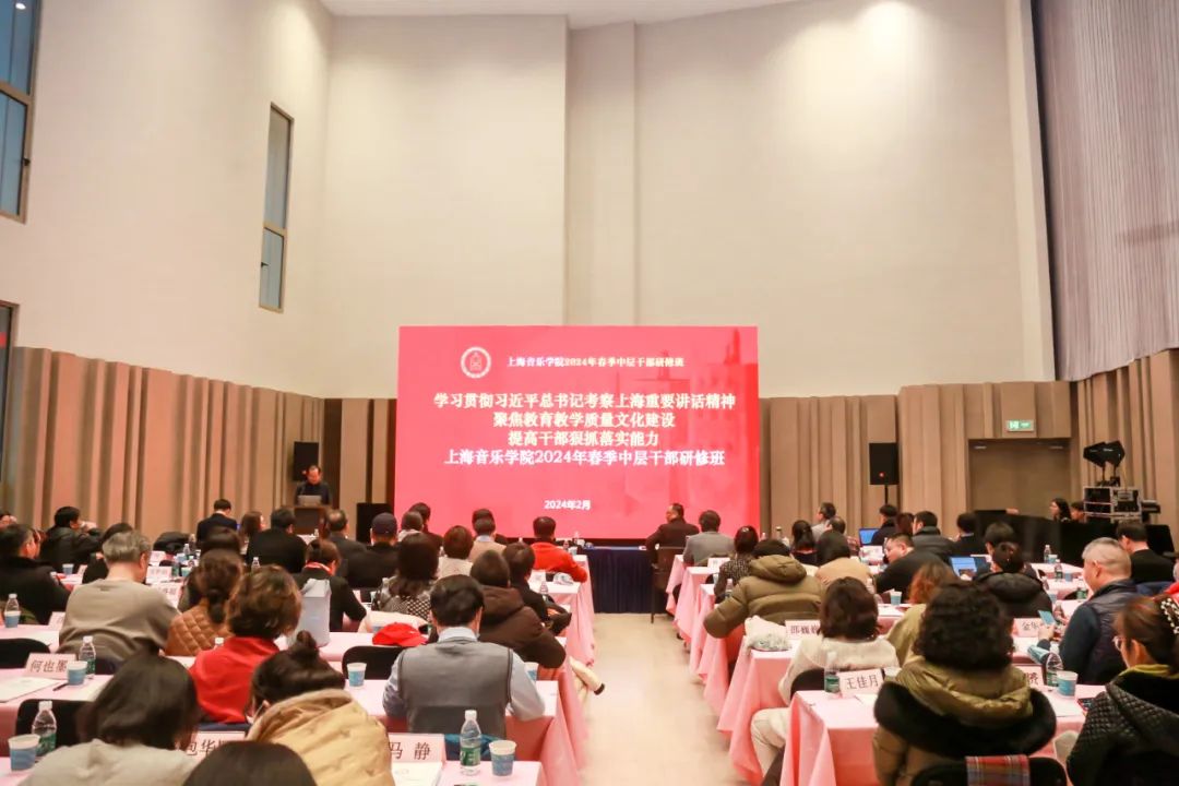 2月27、28日,以“学习贯彻习近平总书记考察上海重要讲话精神,聚焦教育教学质量文化建设,提升干部狠抓落实能力”为主题的中层干部研修班在上音歌剧院举行。上音党政领导班子、全体中层干部、民主党派负责人、教师代表等一百二十余人参加学习。
