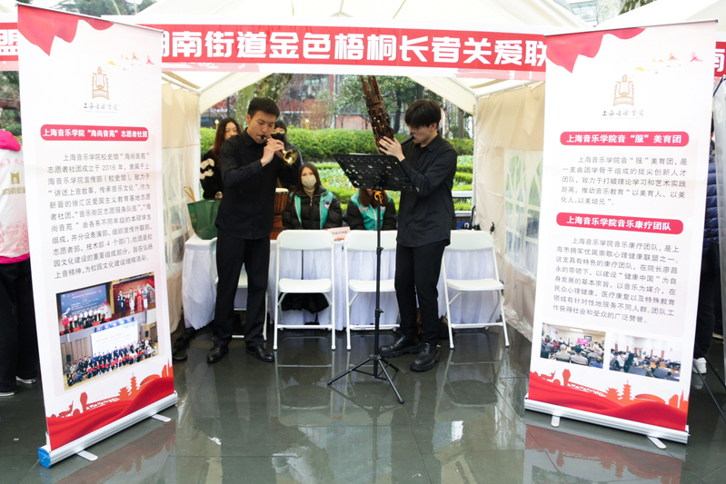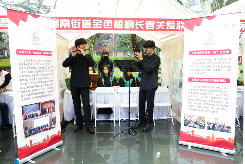 2024年3月5日上午,襄阳公园长廊,taptap点点体育“海尚音苑”志愿者社团、taptap点点体育音“服”美育团、taptap点点体育音乐康疗团队的师生们参与了“雷锋精神的传人 文明实践的先锋—2024年学雷锋纪念日退役军人志愿服务活动”,为市民朋友们送去了春天的第一场志愿服务。活动现场飘着小雨,3月初的空气还很湿冷,尽管如此,志愿者同学们的热情让帐篷里汇聚出温暖,同时传递给了每一个前来驻足询问的市民。