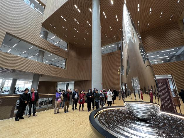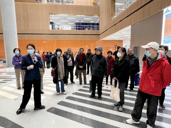 上午第一站来到了上海图书馆东馆。讲解员向大家介绍了上图东馆设计和建造情况,带领参观了阅读广场、主题阅读服务空间等,老同志们体验了图书馆智能科技设备的运用,欣赏《往来春秋》、《陪伴》、《鸟飞了》等主题艺术作品,充分感受了以艺术、文化和科技驱动知识分享的上图东馆的魅力。