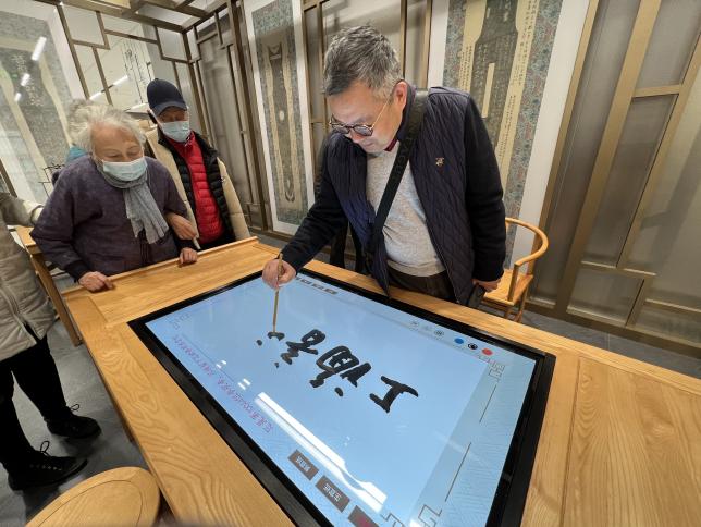 大家体验了上图东馆智能电子书架等设施,跟随讲解员参观了阅读推广区、城市客厅以及馆藏精品等区域,从书法体验到馆藏精品展览,在书香墨韵中领略了中国文化和现代科技的融合。