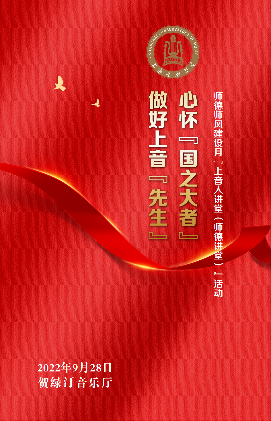 立足新时代,面向新征程,上音将持续以党的建设为统领,落实立德树人根本任务,坚持不懈用习近平新时代中国特色社会主义思想凝心铸魂,用好思政课堂主渠道,拓展实践育人新阵地,为培养一批又一批担当民族复兴大任的时代新人提供坚强保障。