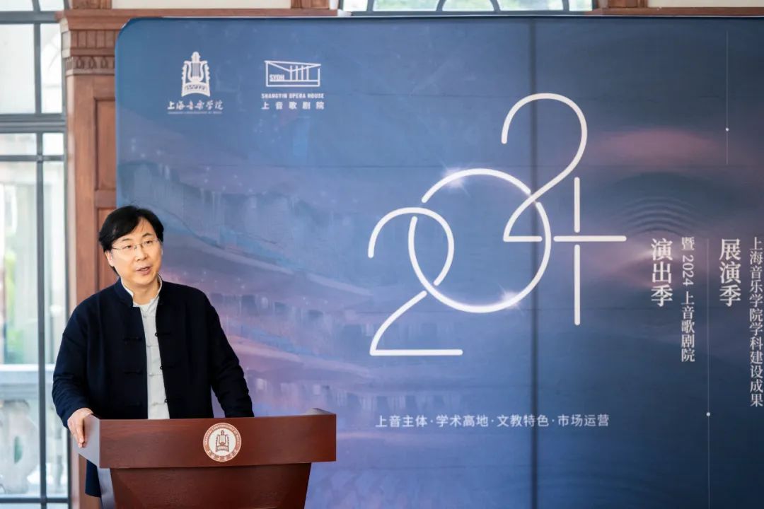 他介绍了即将开幕的“2024上海音乐学院学科建设成果展演季暨上音歌剧院春季演出季”情况,包含“歌剧/声乐”“交响乐”“民族音乐”“致敬经典”“当代浪潮”“国际融合”等六大主题,涵盖交响乐、室内乐、声乐与歌剧、西洋乐器、中国民族器乐、当代音乐等不同领域的30多场演出。在春季演出季期间,上音歌剧院与贺绿汀音乐厅(一院一厅)还将同时呈现“第39届上海之春国际音乐节”的多台重要演出。作为“上海之春”国际音乐节的主要承办方之一,上海音乐学院始终贯彻音乐节的办节宗旨和使命,并且服务大众、服务社会,为推进上海文化建设、构筑上海城市文化形象做出贡献,本届音乐节,上音承办了多台精彩纷呈的演出,将由17台音乐会(20场演出)及两项活动组成,努力践行扶持新人,力推新作的使命,我们在上海之春音乐节的承办项目分为四个板块,分别是:春之众乐、春之羽翼、春之印记、春之韶华。