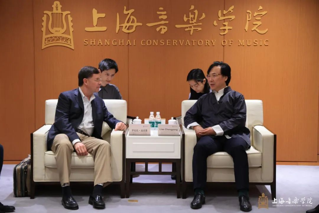 廖昌永对罗伯托·迪亚兹来访表示热烈欢迎和亲切问候。他表示,上海音乐学院和柯蒂斯音乐学院一样,致力于拔尖创新音乐艺术人才的全方位培养,同时,确保教学目标、市场需求和个性化发展的紧密结合。近年来,上音深化“教创演研一体化”人才培养模式,更加注重歌剧学院、乐队学院、民族乐队学院内涵建设和发展。除了培养独奏家之外,上音也注重分类培养,通过教学改革、课程体系设置,加强室内乐、乐队演奏人才队伍的建设。同时,廖昌永对柯蒂斯巡演项目表示欢迎,希望上音继续加强与柯蒂斯音乐学院的学术交流与合作。