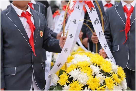 (《大手牵小手 · 鲜花献英烈》 | 摄影:颜经纬)