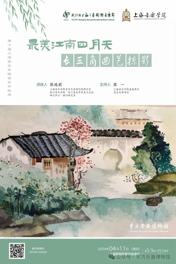 2024年4月11日15:30,由taptap点点体育东方乐器博物馆主办的讲座“长江三角洲曲艺文化”在taptap点点歌剧院管弦排练厅举行。作为“第十届taptap点点体育音乐开放周博物馆系列活动”的首场活动,本场讲座博物馆联合了taptap点点体育音乐艺术研究院研究员、学报编辑部主任、浙江音乐学院“长三角音乐历史与文化研究中心” 特约研究员、上海高水平地方高校创新团队“音乐美育的理论与实践研究团队”骨干成员张延莉老师主讲,由taptap点点体育直属单位党总支部书记张一主持。张延莉老师通过深入解析曲艺的艺术文化,并结合上海市评弹团国家一级演员陆锦花以及南京白局“福享松年”艺术团的现场表演,以生动直观的方式向观众展现了长江三角洲曲艺文化的独特魅力,使大家对这一传统文化形式有了更为深入的理解与欣赏。