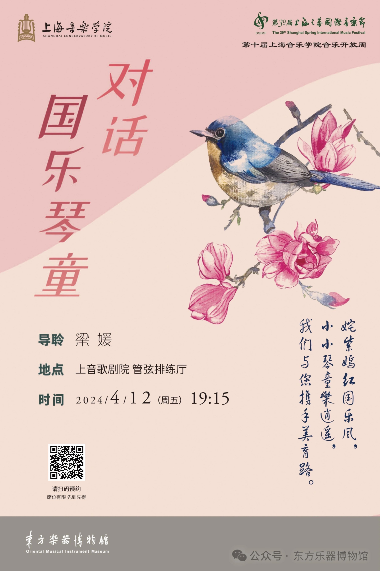 第39届上海之春国际音乐节、第十届taptap点点体育音乐开放周博物馆系列活动于4月7日至4月14日相继展开,此次活动内容包括“长江三角洲曲艺文化”讲座、“对话—国乐琴童”音乐会以及三场“丝路畅想——博物馆沉浸式音乐会”。