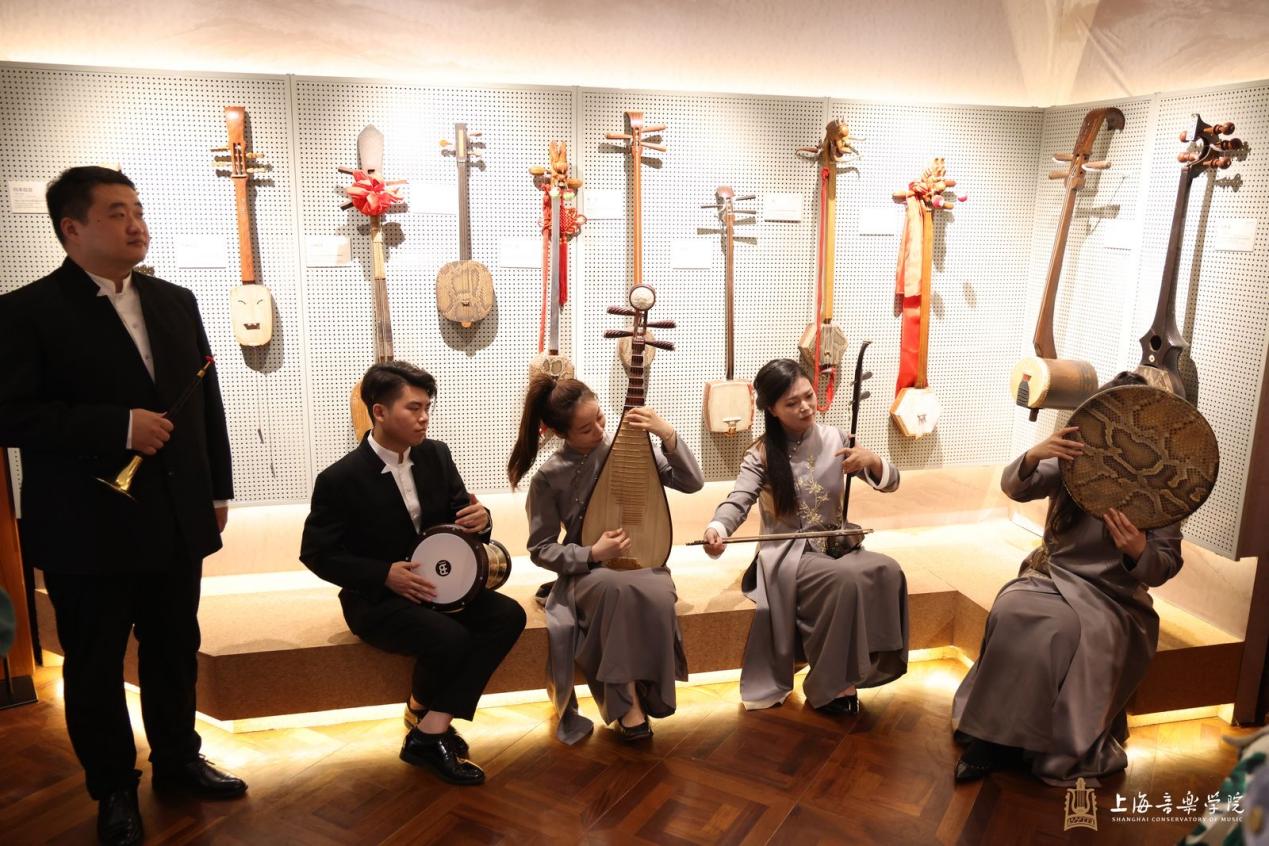 2024年4月14日,“丝路畅响——博物馆沉浸式音乐会”在美育楼一楼展厅上演。音乐会以丝绸之路乐器文化为背景,依托正在进行的“丝路随响”展览,打造了一场以博物馆乐器展厅为“舞台”的沉浸式音乐会。音乐会由邢媛老师导聆,无锡民族乐团的五位演奏家联袂上演。
