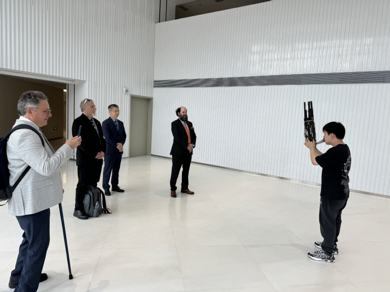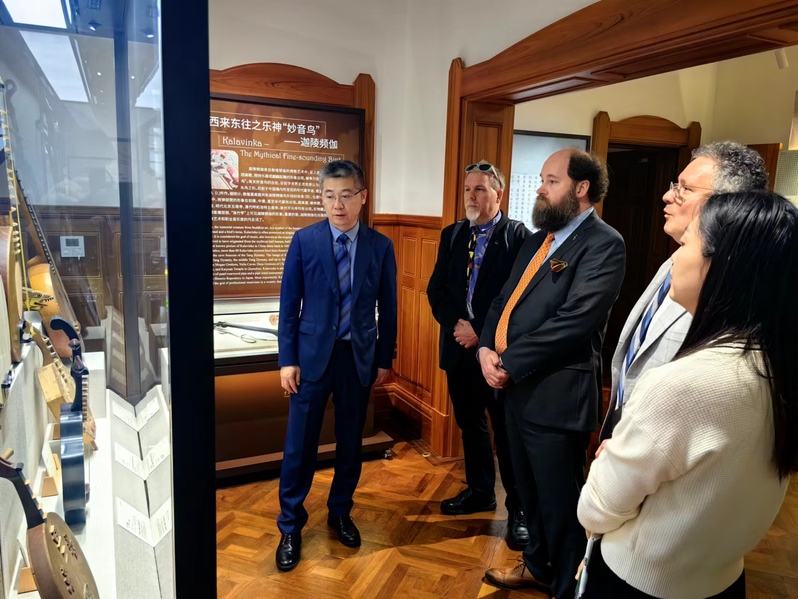 会后,冯磊陪同乔纳斯·莱特一行参观了上音歌剧院、校园开放空间、东方乐器博物馆等,并现场体验民族乐器教学。