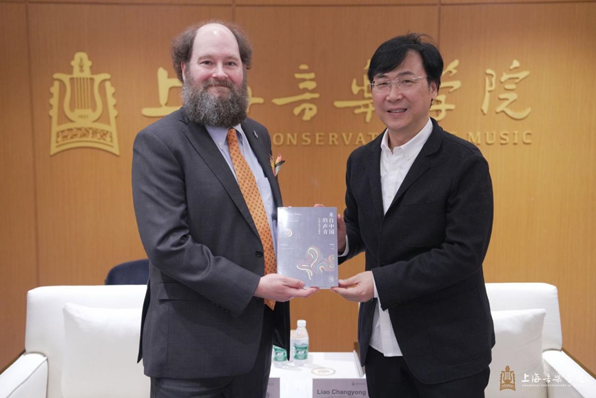 廖昌永对乔纳斯·莱特的来访表示热烈欢迎和亲切问候。随后,他介绍了上音近百年历史沿革和新时代的发展情况,自1927年建校之初,学校就秉持着国际化的办学理念和对多元文化的高度包容。近年来,学校在“教创演研”一体化人才培养模式下,不断开拓进取、推陈出新,搭建高品质国际交流合作平台,力争产出高质量的教育对外开放成果。他表示,上海与旧金山自1980年以来就缔结为国际友好城市,而上海音乐学院与旧金山音乐学院自建立合作伙伴关系以来,也保持着高度而紧密的合作,产出了众多高品质的国际化创演合作硕果。未来,上音期待与旧金山音乐学院在艺术人才培养、一流学科建设、音乐创作表演等方面开展更深入的交流与合作,以高水准的艺术人文交流互鉴,为两国、双城合作贡献自身的力量。