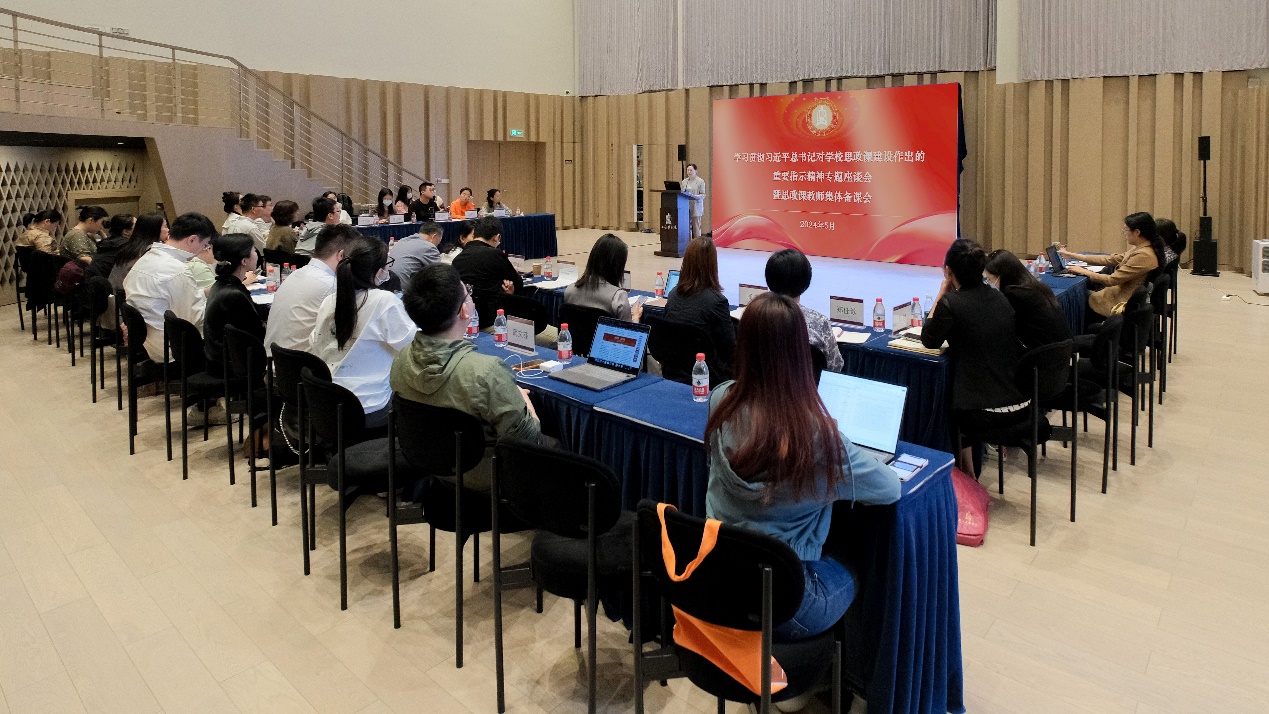 党委宣传部部长、马克思主义学院党总支书记、马克思主义学院院长张卓汇报了学校思政课建设基本情况和下一阶段工作安排。党委学生(研究生)工作部部长、学生处处长欧阳佳沁汇报了“形势与政策”课以及日常思政工作开展情况和下一阶段工作安排。思政课教师代表黄静、王翩,二级院系副书记代表马静、尹晓楠,辅导员代表范恺、朱政分别做交流发言。
