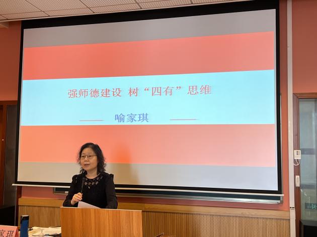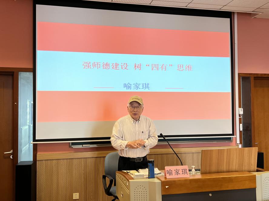 强国先强教,强教先强师。在新时代背景下,教师的师德师风建设对于学校的发展和学生的成长至关重要。为深入学习贯彻落实党的二十大精神和习近平总书记关于教育的重要论述,落实新时代师德师风建设要求,发挥“五老”的教育引导青年教师的优势作用,不断提升教师的职业道德水平,激发教师的教育热情和创造力,明确新时代背景下教师的责任和担当。2024年5月22日中午,由taptap点点体育关工委、离退休工作处主办,党委教师工作部、青年教师联谊会协办,特邀taptap点点体育离退休教师宣讲团成员喻家琪老师为全体新进教职工、部分青年教师开展“强师德建设,树‘四有’思维”主题讲座。院党委教师工作部部长陈晓翌、副部长陆驾云、青年教师联谊会常务副理事长孙宁宁和部分二级关工委主任、副主任出席。讲座由院关工委副主任、离退休工作处处长易慧主持。
