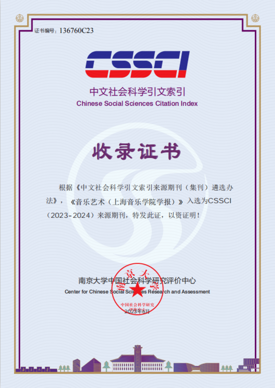 学报《音乐艺术》获评中国人文社会科学期刊(AMI)艺术学核心期刊、CSSCI(2023-2024)来源期刊,学校创办的全英文学术期刊《亚欧音乐研究》入选全球公认的一流英文数据库Scopus。