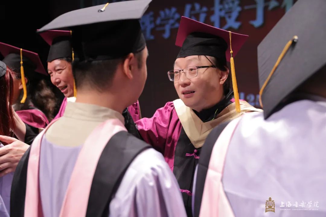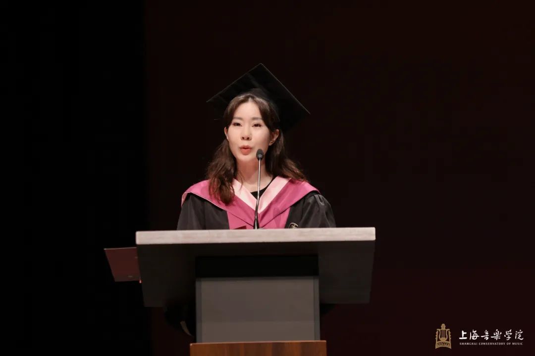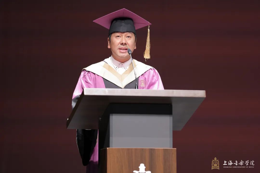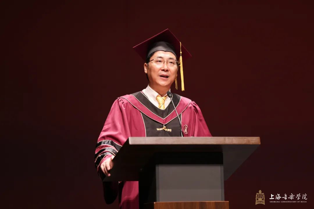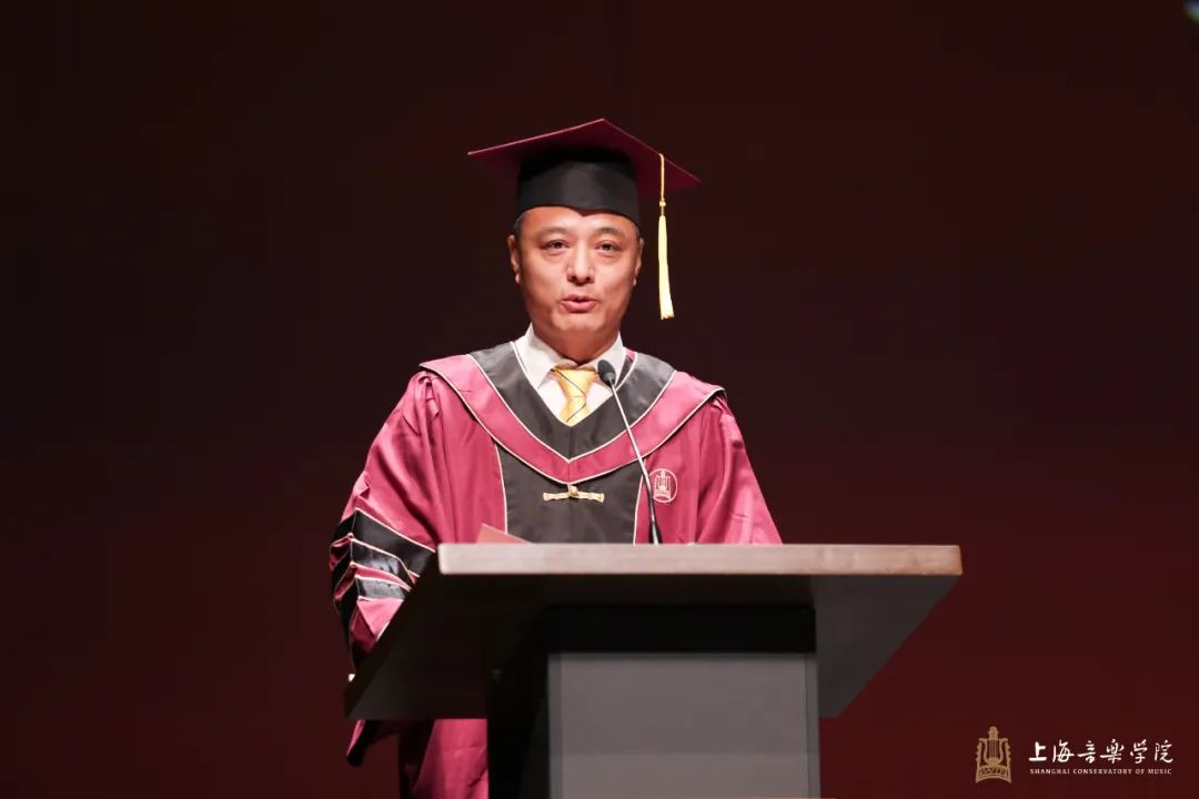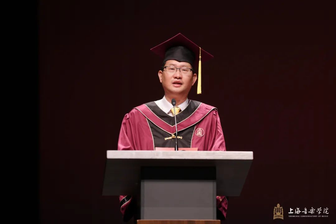 教师代表盛利教授向即将毕业的学子们表示热烈祝贺,鼓励毕业生们成为文化交流的使者,用音乐传递自信与创新,演奏出自强、自信的时代旋律。