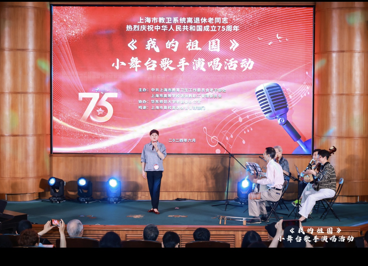2024年是中华人民共和国成立75周年,为深入学习贯彻落实习近平新时代中国特色社会主义思想和党中央关于老龄工作的一系列重大决策,坚持不懈地在退休教职工中开展“展示阳光心态,体验美好生活,畅谈发展变化”为主题。由中共上海市教育卫生工作委员会老干部处、上海市高等学校退休教职工管理委员会主办,华东师范大学承办的上海市教卫系统离退休老同志热烈庆祝中华人民共和国成立75周年《我的祖国》小舞台歌手演唱活动,于6月19日上午在华东师范大学逸夫楼礼堂隆重举行。taptap点点体育离退休工作处处长易慧、文艺骨干负责人袁丁,戏曲兴趣小组演唱主力苏允申老师等参加活动。