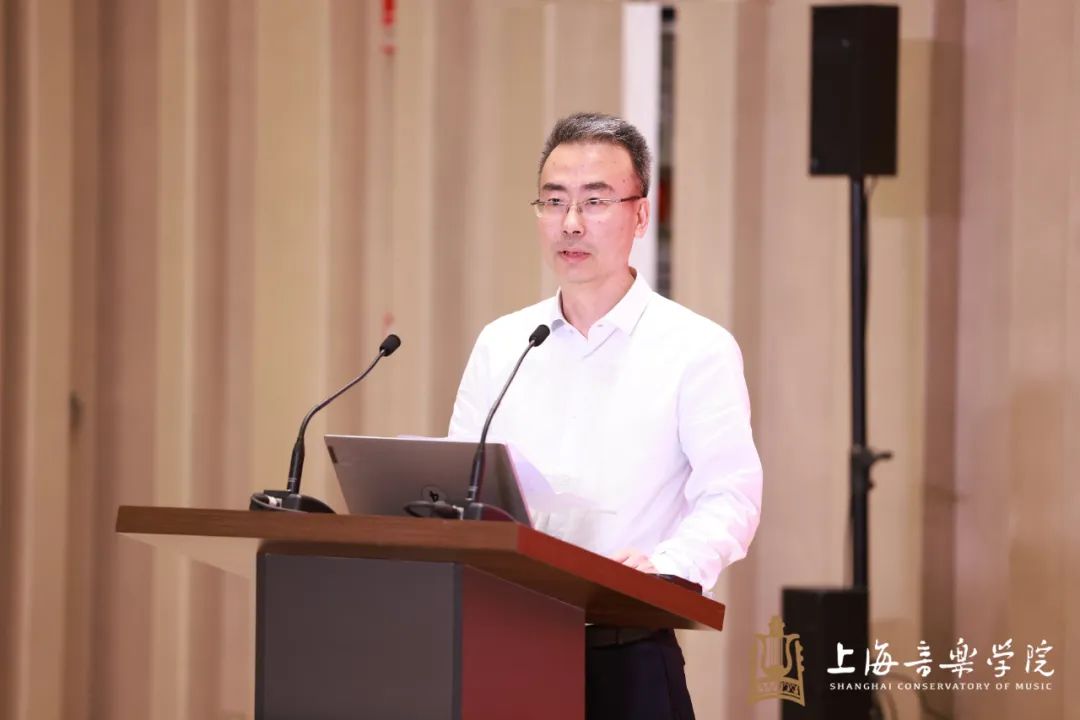 党委常委、宣传部部长、马克思主义学院党总支书记、院长张卓汇报本届教学比赛的总体情况。本届比赛特色鲜明,亮点突出,参赛教师充分挖掘各类思政元素,打造沉浸式、情景式、研讨式等多样教学模式,力争把这门课讲准讲深讲透讲活。同时,实践教学部分以“沿着习近平总书记的上海足迹”为主线,以打造“行走的音乐思政”为总品牌,不断探索出“教学实践+艺术实践+社会实践+科研实践”相统一的实践育人模式。部分优秀案例被媒体广泛报道,形成一批好经验好做法。