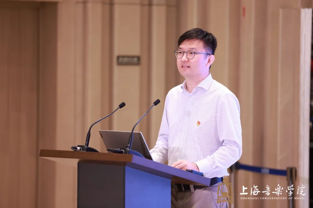在交流展示环节,马克思主义学院副教授李敏,现代器乐与打击乐系辅导员朱政,党委常委、统战部部长、附中党总支书记吴学霆,数字媒体艺术学院辅导员范恺,现代器乐与打击乐系党总支副书记(主持工作)颜睿超,按照教学专题讲课顺序,依次分享学习体会与教学心得。